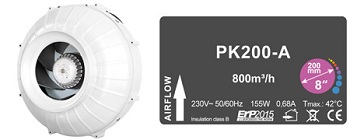Prima Klima AC Rohrventilator 800 m³/h - 200 mm Flansch