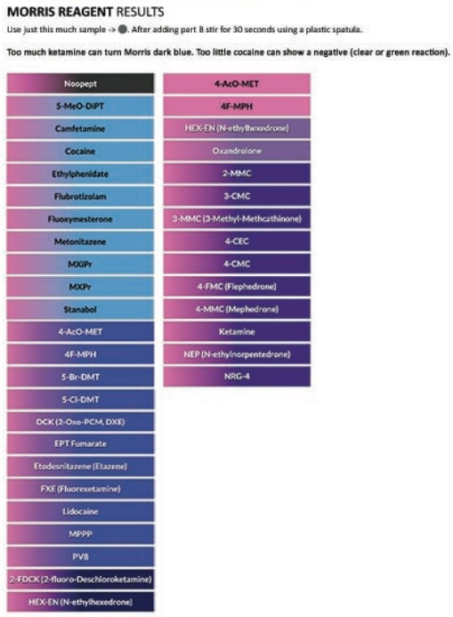 Expected Morris reagent test results: